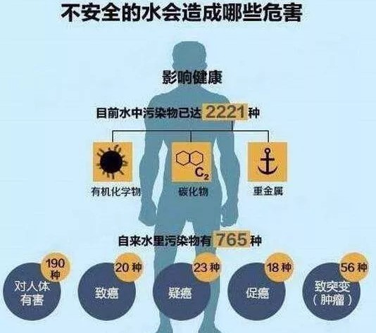 飲用水源的污染、水質(zhì)不達(dá)標(biāo)、水中各種有害物質(zhì)的超標(biāo)、供水的二次污染等,人體所含最大部分的水在今天成了最大的安全隱患。